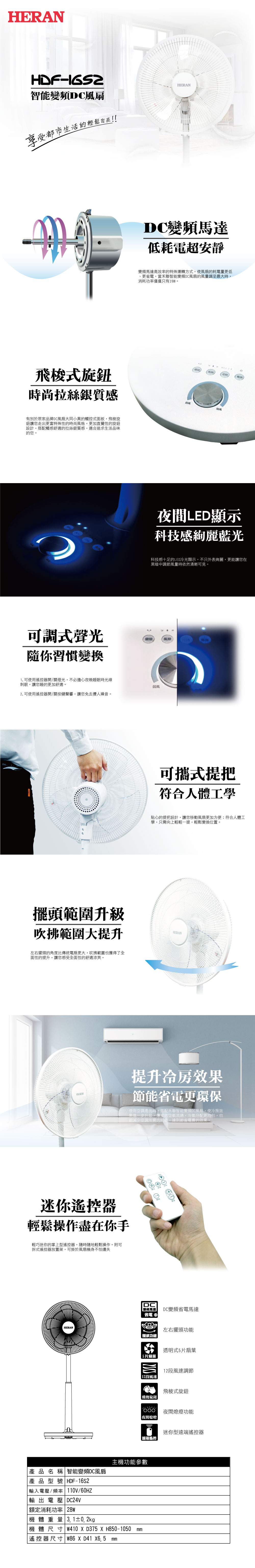 商品訊息簡述: ★禾聯2018年新品★ 飛梭旋鈕設計+遠端遙控,讓你躺著也能一手掌控,省電DC變頻馬達